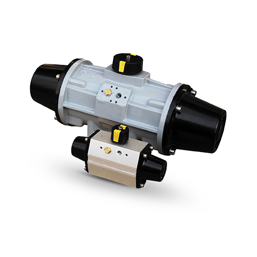 - Четвертьоборотные пневмоприводы, по требованию могут быть произведены с регулировкой хода (регулируемым углом поворота).